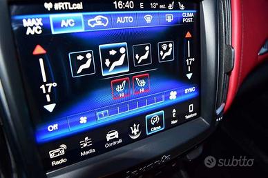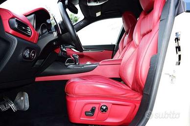 Allestimento “Gransport” dotato dei seguenti optional:vernice Bianco pastello,climatizzatore quadrizona,rivestimento dei sedili in pelle colore Rosso,sedili anteriori riscaldati,panchetta posteriore con sedili riscaldabili,sedili anteriori regolabili elettricamente (8 vie + 4 vie per i lombari) con 2 memorie per il sedile guidatore,finiture laccate lucido su dettagli interni (Carbonio),volante sportivo regolabile elettricamente con palette Active Shifting,cielo abitacolo in Alcantara,Maserati Touch Control Plus (MTC Plus) su display touch screen da 8,4” con navigatore satellitare,Digital Audio Broadcast (DAB),impianto audio Harman Kardon,SIRI (Apple function) Smart Personal Assistant,Easy Entry System,cambio automatico ZF a otto rapporti,Cruise Control adattivo con funzione Stop & Go,proiettori anteriori bi-xeno con Adaptive Front Lighting System (AFS) e sistema di lavaggio proiettori anteriori ad alta pressione,sistema di sospensioni adattive a controllo elettronico (Skyhook),Lane Departure Warning,sensori di parcheggio anteriori e posteriori,Surround-View Camera,vetri posteriori oscurati e laminati,barre longitudinali sul tetto con finitura Black Piano,portellone elettrico,cerchi in lega da 20″ Nereo,pinze freno in colore Rosso.