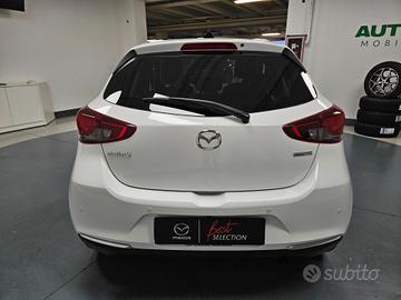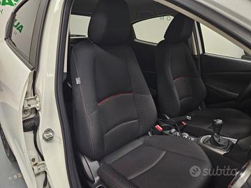 Climatizzatore automatico, Volante multifunzione e pomello cambio rivestiti in pelle, Volante regolabile in altezza e profondità, Sedile Posteriore Abbattibile 60/40, G-Vectoring Control Plus (GVC-Plus), Mazda Push Button, Antenna radio "Shark" Nero Lucido, 3 Anni di garanzia (o 100.000km), Kit Riparazione Pneumatici, Immobilizer, Chiusura centralizzata con telecomando, Radio digitale DAB con 6 altoparlanti e comandi al volante, MZD Connect con display centrale a grafica TFT a colori, HMI Commander, Cerchi in lega da 16" Nero Lucido, Presa Aux in, 2xUSB, Bluetooth con funzione audio streaming, Interfacce Apple CarPlay (wireless)- Android Auto (mediante cavo), Paraurti e maniglie esterne in tinta carrozzeria, Retrov. est. Nero Lucido, regolabili e riscaldabili elettricamente, Sensori luce/pioggia, Luci diurne con funzione Leaving/coming home, Fari anteriori Full Led con fari diurni alogeni, Interni Black/Red, Interni in tessuto Black con finiture e cuciture rosse,