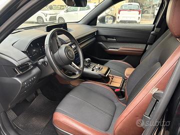 Climatizzatore automatico, Abitacolo con illuminazione a LED, Sedile guidatore regolabile elettricamente a 8 vie, Memorie per regolazione sedile guidatore, retrovisori esterni e Head Up Display, Sedili anteriori riscaldabili elettricamente, Volante rivestito in pelle, Bracciolo centrale anteriore e appoggiabraccia portiere con cuciture a vista, Bracciolo centrale posteriore, Finiture interne cromate, Plancia centrale con comandi a sfioro, HMI Commander, Presa corrente 1500W, Sedile posteriore 60:40, OBC (On Board Charger) 3-phase da 11kW, Garanzia 6 anni o 150.000km, Plancia centrale portaoggetti rivestita in sughero, Plancia centrale rivestita con cuciture a vista, Rivestimento interno maniglie portiere in sughero, Strumentazione centrale digitale con display da 7", Alette Parasole Con Illuminazione, Sistema antifurto perimetrico, Chiusura centralizzata automatica in movimento (ADL), Impianto audio Mazda Harmonic Acoustics con 8 altoparlanti, Navigatore satellitare, Sistema infotainment Mazda Connect con display centrale 8.8", Head Up Display, Cerchi in lega da 18" cromati con inserti Black (versioni R EV), Presa 2xUSB, Connessione Bluetooth, Interfacce Carplay/Android Auto, Cavo di ricarica domestica Mode 2 Type 2 (per ricarica con presa casalinga), Cavo di ricarica Mode 2 Type 3 (per ricarica con wallbox e colonnine), Montanti centrali Nero Lucido, cornice superiore "Dark" o "Silver" e placca satinata "MAZDA" sul montante posteriore, Retrovisori Esterni Regolabili, Riscaldabili E Ripiegabili Elettricamente, Lavafari anteriore, Fari anteriori a matrice di LED con fari diurni a LED e firma luminosa, Fari anteriori e posteriori a LED, Controllo automatico fari abbaglianti (HBC), Sensori luce/pioggia, Industrial Vintage (Black/Brown), Rivestimenti interni "Industrial Vintage" (Black/Brown),