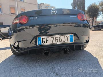 vendo Mazda mx5 2021 50.000km nera interni bianchi, bose sound, cerchi dorati, minigonne e doppio scarico centrale, tagliandi Mazda, perfetta nessun graffio nessun problema, vendo a malincuore per cambio progetto. sound favoloso. per il resto è la mia seconda MX 5, tenuta da vero appassionato e cultore del modello