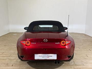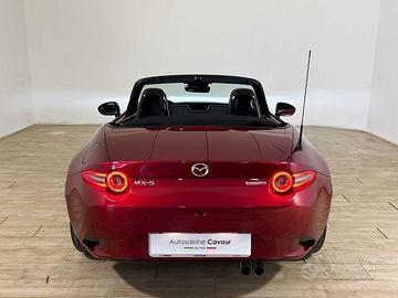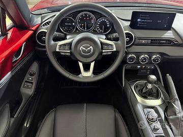 DEK:[8537336] Autosalone Cavour srl Rif.704927 Nuova MX-5 2024 Roadster 1.5L 132 CV Skyactiv G 6MT Exclusive-line Euro 6e Colore Soul Red Crystal M Interni in pelle nera Equipaggiamento di serie Altro: 6 Anni di garanzia (o 100.000km) Equipaggiamenti tecnici: Mazda Push Button Alzacristalli elettrici con chiusura centralizzata Cruise Control con limitatore di velocità e Intelligent Speed Assist (ISA) ABS, EBD, EBA, DSC, TCS, ESS Kinematic Posture Control (KPC) Airbag frontali e laterali (guidatore e passeggero) Sensori pressione pneumatici (Tyre Pressure Monitoring System) Sistema automatico di frenata di emergenza anteriore (SBS) Sistema mantenimento della carreggiata (LAS) Sistema rilevamento segnali stradali (TSR) Sistema rilevamento stanchezza del guidatore (DAA) Sistema di frenata automatica per collisione secondaria Fari anteriori a matrice di Led (Adaptive LED Headlights) e posteriori a LED Smart key DSC-Track (versioni 6MT) Sistema amplificazione sonorità sportiva nell'abitacolo Sistema di monitoraggio angoli ciechi (Blind Spot Monitoring) con sistema di rilevazione pericolo uscita parcheggio (Rear Cross Trafic Alarm) Sistema di rilevazione pericolo apertura portiere Sistema di frenata di emergenza posteriore in uscita dal parcheggio (SBSRC) Sistema automatico di frenata di emergenza in città anche posteriore (SCBS rear) Interni: Pomello del cambio e leva freno a mano rivestiti in pelle Rivestimento console centrale in ecopelle Finiture interne cromate Battitacchi con inserti in acciaio Interni e confort: Capote in tessuto nero (versione ST) Volante multifunzione rivestito in pelle con regolazione telescopica MZD Connect con display centrale a colori grafica TFT da 8.8", Bluetooth,funzione touchscreen per Apple Car Play e Android Auto Interfacce wireless