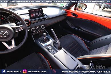 DEK:[10880917] DIAMO PRECEDENZA ALLE RICHIESTE COMPLETE DI RECAPITO TELEFONICO Siamo organizzati per trattativa ed acquisto A DISTANZA, con anche spedizione via camion a domicilio. Ci potete contattare compilando l'apposito modulo, via mail, whatsapp, oppure telefonicamente: -- SALONE VENDITE -- SIMONE -- LUCA -- SUL NOSTRO SITO AUTO-CENTER.IT POTETE VISUALIZZARE + DI 60 FOTO PER OGNI AUTO DESCRIZIONE Usato di importazione europea in OTTIME condizioni con chilometraggio certificato. Cronologia Service MAZDA: 09/2020 con 6.702 km 05/2022 con 9.443 km Nuovo Service Mazda incluso nel prezzo POSSIBILITA' FINANZIAMENTO • Riferimento MX5-501 • Prima immatricolazione 10/2019 • Chilometraggio 18.723 KM CERTIFICATI • Garanzia 12 MESI • Passaggio / IPT non compreso nel prezzo • Valutiamo permute anche di valore superiore (se di nostro interesse) • NON ritiriamo Moto e Auto d’epoca; NON accettiamo offerte al ribasso • PRONTA CONSEGNA IN SEDE A TRENTO • Visionabile da Lunedì a Sabato (Sabato aperti dalle 9.00 alle 13.00) • È gradito l’APPUNTAMENTO MAZDA MX-5 ROADSTER 2.0L 30TH ANNIVERSARY 0624/3000 MT6 184CV EURO6 COLORE ESTERNO Racing Orange INTERNI RECARO Pelle Alcantara Neri cuciture Orange ALLESTIMENTO INCLUSO • 2 porte • 2 posti • Apple CarPlay - Android Auto • Barra anteriori a duomi • Bluetooth • Cambio manuale a 6 marce • Capote manuale in tessuto Nero • Cerchi in lega forgiati RAYS da 17" Gun Metallic • Climatizzatore automatico • Cruise Control con limitatore di velocità • Differenziale autobloccante di tipo meccanico • Fari anteriori a matrice di LED (Adaptive LED Headlights) • Fashion Bar Nero Lucido con frangivento • Impianto audio Bose con Radio digitale DAB, doppia
