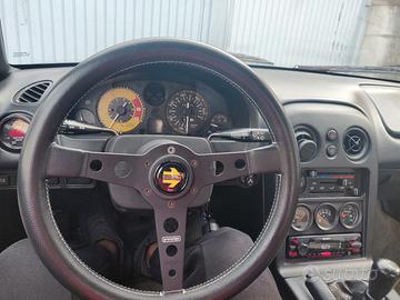 Componenti installati: Turbina TD04 derivazione Subaru, Bronzine di banco trimetalliche, Guarnizione testa della 323 Turbo (0,4mm più spessa dell'originale per decomprimere), Collettori di scarico G19, Filtro a cono Ramair, Intercooler aria, Coolant reroute, Radiatore olio 7 file, Linea di scarico da 63mm con valvola a farfalla per sound praticamente originale, TPS BMW, Pompa benzina AEM, Iniettori Bosch EV14 550cc, Centralina ME221, Regolatore pressione carburante, Boost controller, Frizione del 1.8 Competition Clutch stage 4, Volano alleggerito del 1.8, Differenziale Torsen 4.1 della NB, Cambio 5 marce, Strumentazione: AFR, Pressione olio, temperatura olio, pressione turbo, Assetto Meisterr ClubRace (PRATICAMENTE NUOVO), Tutti i tubi freno in metallo, Olio freni sportivo Motul RBF 660 (cambiato 1 anno fa), Freni anteriori: Big Brake della NB 1.8 - disco da Ø270mm, Freni posteriori: Medium Brake - disco da Ø255mm, Tutte le boccole e supporti differenziale cambiati 2 anni fa, Hard top in tinta con sbrinatore funzionante, Ducktail in tinta, Radiatore ILMotorsport in alluminio da 42mm, Doppie ventole di raffreddamento, Capote e rain rail cambiati durante la pandemia, Ganci fissi per hard top, Volante Momo Prototipo, Mozzo+sgancio rapido NGK, Tachimetro Revlimiter, Bobine singole Toyota, KNOCK SENSOR