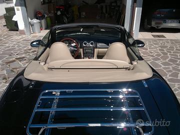 Valuto la vendita della mia Mazda MX-5 “The Bridge” anno 2003, una delle versioni più rare ed eleganti della serie collection 03. • Serie limitata e numerata: n°83 di 120 esemplari al mondo • Unico proprietario • 90.500 km originali • Auto completamente originale Auto in condizioni eccellenti sotto ogni aspetto: • Motore impeccabile • Interni perfetti in pelle beige • Carrozzeria molto bella e sempre curata • Nessun lavoro da fare Versione speciale realizzata in collaborazione con The Bridge per la collection '03 • Interni in pelle pregiata color beige/cuoio con sedili riscaldati • Volante, pomello cambio e plancia in radica originale Nardi • Capote in ottime condizioni • Full optional per l’epoca con lettore cd e climatizzatore • Doppie chiavi È un Auto unica nel suo genere, divertentissima da guidare e di sicura rivalutazione futura in quanto storica. ideale sia per utilizzo che come investimento. Non è una MX-5 qualunque, ma una serie limitata di interesse collezionistico. Auto per veri appassionati. Tutti i dettagli e le cromature sia interne che esterne come il portapacchi e la marmitta con scarico cromato sono originali di fabbrica. A completamento del pacchetto storico dispongo inoltre del set valigie originali e delle loro sacche fornite a corredo dell'auto al momento dell'acquisto ma che vendo a parte al prezzo da concordare insieme. È naturale che con intendo svenderla. vorrei che vada a qualcuno che ne capisca il valore e la preservi bene come ho fatto io in questi 23 anni.