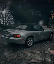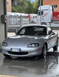 Mazda miata mx5 nb del 2000 iscrivibile ASI in ottime condizioni generali, completamente stock se non per i fari e scarico terminale ag works (ovviamente darei anche l'originale qualche segnetto di carrozzeria ma comunque nella norma avendo quasi 26 anni, non necessita di alcun lavoro di motore perché funziona perfettamente senza problemi. Cinghia eseguita 4k km fa insieme al tagliando e ad una revisione completa del motore.