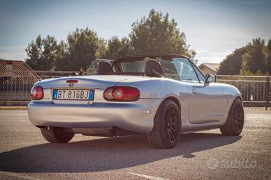 Vendo Mazda MX5 NBFL 1.8 VVT 146cv EX 1.6 110cv (swap motore eseguito 2 proprietari precedenti fa) e ho la cronologia dei lavori eseguiti dal 2016. Macchina in famiglia da Novembre 2021 quando aveva 174.300 km. Usata nei weekend e quasi mai durante la pioggia. Ho sostituito olio motore, filtro olio, liquido refrigerante e ho eseguito la pulizia del filtro aria K&N ogni 10.000 km o un anno con olio Motul 8100 o Pakelo Multisint. Auto in buone condizioni sia meccaniche che di carrozzeria (tranne paraurti anteriore con pezzi di vernice mancanti). Motore con all'attivo circa 120.000 km