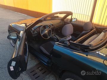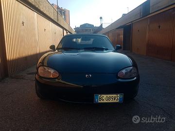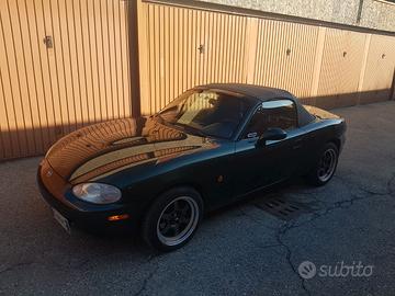 Mazda miata mx5 nb immatricolata 1999, verde inglese colore originale, macchina totalmente riverniciatura e ricondizionata di meccanica dotata di hardtop in tinta con sbrinatore compreso, iscritta asi sul libretto, autoradio carpley Km 170000 chiusura centralizzata vetri elettrici.