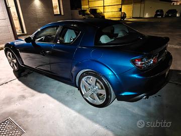 Mazda Rx8 anno 2006 unico proprietario con 49.086km in colore Phantom Blue metallic mica molto raro. Auto prima vernice, conservata, scocca sana mai subito incidenti, appena fatta lucidare, completamente originale in ogni sua parte e prossima targa oro.
