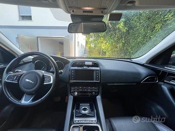 Jaguar F-Pace 2.0 D 180 CV AWD 20D "Black Edition" è un SUV di fascia alta, equipaggiato con un motore diesel da 2.0 litri, 180 CV, trazione integrale (AWD) e cambio automatico a 8 rapporti. Questa versione si distingue per gli allestimenti e finiture specifiche "Black Edition", come i cerchi in lega da 19 pollici neri e altri dettagli estetici in nero lucido