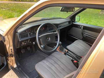 Mercedes benz 190E in ottimo stato, sana di carrozzeria, meccanica e tappezzeria. Cambio manuale tetto apribile, cerchi in lega originali Mercedes. Recenti lavori: tagliando, distribuzione e iniettori. Valuto permute se di mio interesse. Certificato ASI.