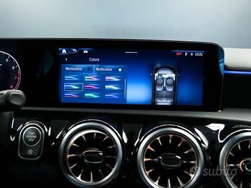 Climatizzatore automatico CONFORTMATIC, Portabevande doppio, Vano portaoggetti nella consolle con coperchio avvolgibile, Luci soffuse «ambient», Soglie d'ingresso illuminate, Sedili anteriori riscaldabili elettricamente, Supporto lombare regolabile su 4 parametri, Aletta parasole estraibile, Scanner di impronte digitali, Schienali dei sedili posteriori ripiegabili, Servizi con accesso remoto, Keyless-Go, Giubbetto ad alta visibilità per guidatore, Tirefit, Display completamente digitale sulla plancia, Assetto Ribassato, Advanced Sound System, MBUX Navigation Premium, Display centrale, Sistema di ricarica wireless per dispositivi mobili anteriore, Cerchi in lega sportivi AMG da 18" a 5 doppie razze con pneumatici 225/45 R18 su 7,5 J x 18 ET 49, Fari LED High Performance, Sistema di assistenza abbaglianti adattivi, Interni in artico / microfibra microcut nero, AMG Line, AMG Line PREMIUM, Pacchetto parcheggio con telecamera per la retromarcia assistita, Pacchetto Premium, Pacchetto retrovisori, Pacchetto USB Plus, Visibility Light Pack con luci soffuse «ambient» monocolore,