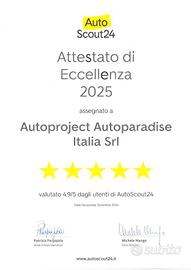 AUTOPROJECT S.R.L. VI PROPONE : SI POSSONO TROVARE MAGGIORI FOTO IN ALTA DEFINIZIONE SUL NOSTRO SITO WWW.AUTOPROJECT.IT *************************************** 1)ACCETTIAMO PERMUTE: sul nostro sito www.autoproject.it puoi richiedere un valutazione del tuo usato in modo semplice e preciso. Oppure inviando delle foto dettagliate con tutte le info della vostra vettura al numero WhatsApp .In giornata avrete la nostra migliore valutazione. 2) RITIRO DEL VEICOLO IN 1 ORA: Passaggio immediato presso la nostra sede - Servizio ritiro clienti da stazione ferroviaria di Parma 3) POSSIBILITA' DI PROVA SU STRADA 4) POSSIBILITA' DI FAR VISIONARE L'AUTO DA UNO SPECIALISTA DI VOSTRA FIDUCIA 5)Tutti i nostri veicolo sono visibili SU APPUNTAMENTO 6) POSSIBILITA' DI FINANZIAMENTI FLESSIBILI E PERSONALIZZATI PER OGNI ESIGENZA 7) PER I CLIENTI FUORI CITTA/REGIONE OFFRIAMO IL SERVIZIO DI FOTO E VIDEO DETTAGLIATE DELL'AUTOVETTURA, NEL PREZZO INDICATO NON E' INCLUSO IL PASSAGGIO DI PROPRIETA', GARANZIA 12 MESI '''GARANZIA EUROPA''' COMPLETA DI : TRAINO GRATUITO, AUTO SOSTITUTIVA, NUMERO VERDE ATTIVO 24 ORE SU 24 MIGLIAIA DI OFFICINA CONVENZIONATE IN TUTTA ITALIA ED EUROPA, 500€ DA SOTTOSCRIVERE AL MOMENTO DELL'ACQUISTO. PER MAGGIORI INFO CONTATTARE I RESPONSABILI VENDITE: EMAIL info@autoproject.it La dotazione tecnica e gli optionals potrebbero in alcuni casi differire dall'effettivo equipaggiamento del veicolo. A causa della difformità dei dati pubblicati dai vari portali, AUTOPROJECT SRL, declina ogni responsabilità per eventuali involontarie incongruenze, che non rappresentano in ogni caso un impegno contrattuale Climatizzatore automatico THERMATIC, Luci freno adattive, Filtro antiparticolato per motorizzazioni diesel (DPF), Keyless Start,accensione/spegnimento motore tramite pulsante, Volante multifunzione a 12 tasti a tre razze, Cambio manuale a 6 marce, ECO start/stop per cambio automatico con funzione Ho