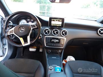 Mercedes classe A200 argento polare con tetto panoramico, km 99000, anno fine 2014, 2000 cm^3, 136 CV, navigatore, 5 porte, diesel, full optional con allestimento AMG. Cambio automatico 7 rapporti.