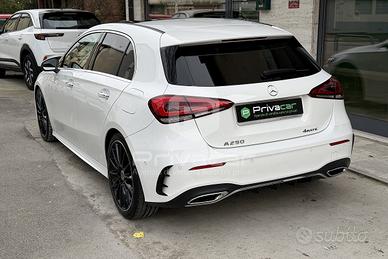 PERIZIA DELL'ESPERTO PRIVACAR: MERCEDES A 250 Automatic 4Matic Premium, Auto in ottime condizioni generali pari al nuovo. Proprietario non fumatore Km CERTIFICATI - Immatricolata il 06/2019 - Km: 52.000 . Tra gli accessori particolari abbiamo: Volante in pelle , paddle al volante, navigatore satellitare, Apple Car Play, Climatizzatore bi-zona automatico, doppio schermo, pacchetto Luxury, luci soffuse "Ambient" con 64 diversi colori, pacchetto Parcheggio con telecamera a 360°: include Park Assist con PARKTRONIC, rivestimenti in pelle nera con sedili sportivi, sistema di assistenza attivo alla regolazione della distanza DISTRONIC, tetto "Panorama" scorrevole, cofano motore attivo per sicurezza pedoni, tappetini in velours sportivi AMG, e molto altro ancora nella lista sezione accessori.