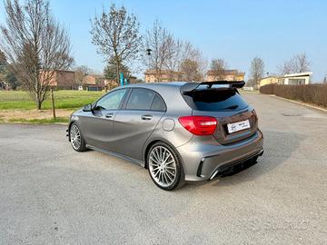 Mercedes-Benz A45 Amg Turbo Benzina, 4Matic, 265 kw 360 cv, immatricolata 02/2015, super bollo con massima riduzione, 134.000 km certificati, 5 porte, optional: Preparazione Stage2 Romeo Ferraris (down pipe con copertura termica, filtro aria lavabile, mappa motore con 421 cv, volante in carbonio con display e led di cambiata), kit estetico aero mercedes, fari led, retrocamera, climatizzatore, radio cd mp3, usb, cruise control, navigatore, sedili riscaldati, cerchi in lega da 19 con gomme Pirelli quattro stagioni al 70%, doppie chiavi, meccanica e interni ok, carrozzeria con qualche piccolo segno dovuto all’utilizzo. Prezzo Euro 21.900 non trattabile, (possibilità di garanzia 12 mesi a 450€), no offerte, no perditempo e curiosi. Possibile controllo con il vostro meccanico di fiducia presso la mia sede. Preferibile contatto telefonico al 335/6107288. Targa EX407YD