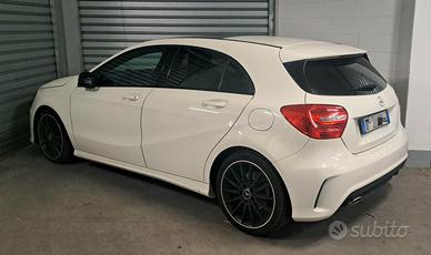 Mercedes A180d allestimento Premium AMG, 109 cv, km 91.600, colore bianco, cambio manuale 6 marce, tetto panoramico in cristallo (non apribile), vetri posteriori fumé, fari led, interni sportivi misto pelle/alcantara, cerchi diamantati Amg da 18", regolarmente tagliandata e sempre tenuta in box. Cinghia di distribuzione fatta da poco. Dotata di sistema multimediale android da 12" touch screen, amplificatore Audison, front tweeter Hertz, subwoofer Focal, il tutto integrato nel doppiofondo del bagagliaio nel vano ruota di scorta, quindi bagagliaio totalmente libero. Prossima revisione 02/2027. Dispongo anche di un treno di gomme invernali su cerchi da 17". Disponibile a qualsiasi prova. No perditempo