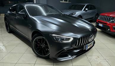 MERCEDES AMG GT 4 COUPE 43 MHEV PREMIUM 4matic, Vettura Ufficiale Italia, Immatricolazione fine 2022, Motorizzazione 3000cc biturbo da 367cv + motore elettrico 48v (se la regione aderisce no bollo e superbollo fino al 2028) km 73mila tagliandati MB, Colore nero designo opaco (casa madre NO WRAPPING), Interno in pelle estesa e alcantara nero/grigio, Finiture in alluminio e nero pianoforte, Cerchi nero opaco con bordino alluminio AMG da 20, Sedili sportivi AMG parzialmente elettrici e riscaldabili, Volante sportivo AMG con manettini di comando, Pack AMG PERFORMANCE, Rilevazioni tempi su giro, Fari FULL LED adattivi, Frecce dinamiche, Pack sicurezza completo (Cruise control adattivo con funzione freno, Lane assist, Blind spot assist, Attention assist) Parkassist con surround view (4 camere)...e tanto altro (su richiesta lista optional), Fatturazione con IVA ESPOSTA 22% (no vendita al netto IVA), Garanzia legale 12 mesi, Possibile finanziamento anche minirate e maxirata, Possibile permuta ad eurotax blu,