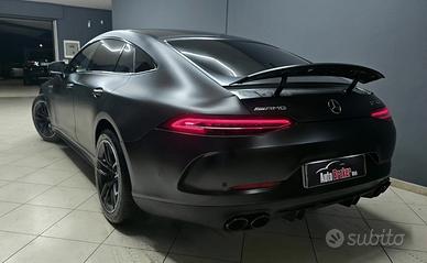 MERCEDES AMG GT 4 COUPE 43 MHEV PREMIUM 4matic, Vettura Ufficiale Italia, Immatricolazione fine 2022, Motorizzazione 3000cc biturbo da 367cv + motore elettrico 48v (se la regione aderisce no bollo e superbollo fino al 2028) km 73mila tagliandati MB, Colore nero designo opaco (casa madre NO WRAPPING), Interno in pelle estesa e alcantara nero/grigio, Finiture in alluminio e nero pianoforte, Cerchi nero opaco con bordino alluminio AMG da 20, Sedili sportivi AMG parzialmente elettrici e riscaldabili, Volante sportivo AMG con manettini di comando, Pack AMG PERFORMANCE, Rilevazioni tempi su giro, Fari FULL LED adattivi, Frecce dinamiche, Pack sicurezza completo (Cruise control adattivo con funzione freno, Lane assist, Blind spot assist, Attention assist) Parkassist con surround view (4 camere)...e tanto altro (su richiesta lista optional), Fatturazione con IVA ESPOSTA 22% (no vendita al netto IVA), Garanzia legale 12 mesi, Possibile finanziamento anche minirate e maxirata, Possibile permuta ad eurotax blu,