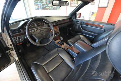 Nel 1989, la Serie 124 si arricchì della versione cabriolet, caratterizzata da interni di pregio con cerchi in lega, alzacristalli elettrici, dettagli in pelle e radica. La linea dell'auto restituisce l'eleganza inconfondibile del modello base W124. Il frontale è possente, con la calandra finemente cromata e un gruppo ottico correttamente disegnato. Sollevando il cofano, troviamo il motore sei cilindri in linea 3.0 litri 24 valvole da 220 CV, una chicca per chi ama osservare anche i dettagli meccanici. Esternamente la carrozzeria si presenta in buono stato con qualche segno di carrozzeria dovuta ai suoi 32 anni. Non presenta ruggine e non presente ammaccature di importante rilievo in quanto l'auto presenta una vernice originale al 70%. Meccanicamente si presenta in ottimo stato con lavori di manutenzione eseguiti negli ultimi anni presso la nostra officina di fiducia. I km segnati sono reali 195000 quasi nulla per la robustezza del 6 cilindri in linea. Internamente l'auto si presenta in ottimo stato. La pelle nera dei sedili è in ottimo stato, tutta la parte elettronica ed elettrica dell'auto è funzionante al 100%. La Capotte presenta qualche sfilacciatura esterna ma non è bucata ma soprattutto