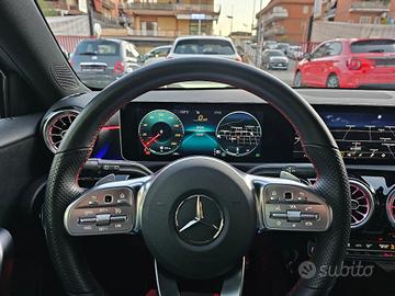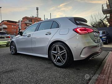 Mercedes-Benz A 180d Aut. Premium AMG ufficiale Mercedes-Benz Italia, uniproprietario, con chilometraggio certificato (33.487 km immatricolata 05/2019) e riscontrabile in casa madre con service digitale, perfette condizioni. E' equipaggiata con i seguenti accessori: pacchetto premium amg line, colorazione carrozzeria grigio argento metallizzato, cambio automatico a doppia frizione 7 rapporti, mascherina anteriore Matrix, fari anteriori full led 'High Performance led', luci diurne led, fari posteriori full led, sensori di parcheggio anteriori e posteriori, retrocamera, cerchi in lega AMG da 18' bicolore satinati/grigi, volante sportivo AMG in pelle liscia e traforata multifunzione con paddles per cambio marcia e cuciture a contrasto rosse, cruise control e limitatore di velocità, 4 vetri elettrici, specchi esterni regolabili e richiudibili elettricamente, pacchetto luci soffuse interne multicolore e esterne, modanature interne nero lucido e opaco, sedili sportivi in pelle e alcantara con cuciture rosse a contrasto e con finale di seduta allungabile, bracciolo centrale anteriore porta oggetti, virtual cockpit doppio da 10.25 pollici (il massimo), sensore pioggia/luci, pedaliera sportiva in alluminio, autoradio navigatore touchscreen con comandi vocali 'hey Mercedes' connettività completa smartphone bluetooth WLAN e ingressi mini USB AndroidAuto/AppleCarplay, climatizzatore automatico digitale bizona, drive select con 4 modalità di guida selezionabili, riconoscimento automatico della segnaletica stradale, sistema di antisbandamento attivo, sistema della frenata automatica attivo, Sistema di chiamata di emergenza Mercedes-Benz, Attention Assist, portaocchiali, kit di gonfiaggio pneumatici. Garanzia 12 mesi inclusa, passaggio di proprietà escluso. Prezzo € 27.490 valido in caso di applicazione della formula finanziamentoALL IN (finanziamento minimo €15mila, rate da 60 72 84 mesi, assicurazione sul credito,assicurazione furto incendio atti vandalici calamità naturali cris
