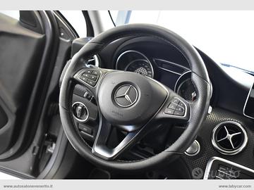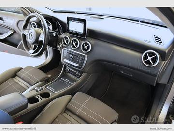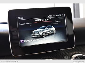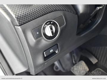 Abs, Airbag, Airbag passeggero e laterali, Airbag per la testa e le ginocchia, Chiusura centralizzata, Immobilizzatore elettronico, Keyless Start, Regolazione e chiusura specchietti retrovisori elettrica, 4 alzacristalli elettrici comfort, Computer di bordo, Accensione fari automatica, Sensore pioggia, Volante a 3 razze regolabile in altezza e profondità, Trip control, Comandi vocali, Navigatore cartografico, Autoradio digitale con comandi al volante, Lettore cd mp3, Interfaccia Bluetooth-USB-AUX, Climatizzatore, Bracciolo centrale in pelle scorrevole porta oggetti, Interni in pelle parziale nera con cuciture bianche, Inserti plancia effetto carbonio, Sedili anteriori regolabili in altezza, Supporto lombare elettrico, Battitacco cromato con logo Mercedes Benz, Sedili posteriori sdoppiati, Start-Stop automatico, Dynamic Select, Cambio automatico con paddle al volante, Freno di stazionamento elettrico, Fari Full LED, Fari posteriori a LED, Profilo paraurti anteriore e posteriore cromato, Griglia anteriore a nido d'ape, Sensori di parcheggio anteriori e posteriori, Cerchi in lega 17.