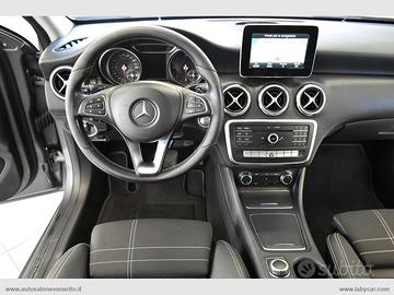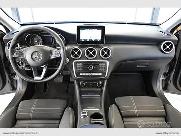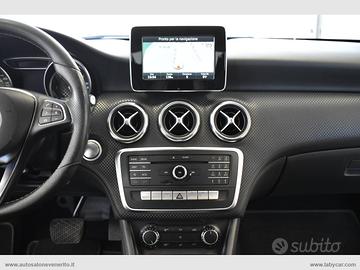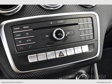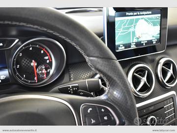 Abs, Airbag, Airbag passeggero e laterali, Airbag per la testa e le ginocchia, Chiusura centralizzata, Immobilizzatore elettronico, Keyless Start, Regolazione e chiusura specchietti retrovisori elettrica, 4 alzacristalli elettrici comfort, Computer di bordo, Accensione fari automatica, Sensore pioggia, Volante a 3 razze regolabile in altezza e profondità, Trip control, Comandi vocali, Navigatore cartografico, Autoradio digitale con comandi al volante, Lettore cd mp3, Interfaccia Bluetooth-USB-AUX, Climatizzatore, Bracciolo centrale in pelle scorrevole porta oggetti, Interni in pelle parziale nera con cuciture bianche, Inserti plancia effetto carbonio, Sedili anteriori regolabili in altezza, Supporto lombare elettrico, Battitacco cromato con logo Mercedes Benz, Sedili posteriori sdoppiati, Start-Stop automatico, Dynamic Select, Cambio automatico con paddle al volante, Freno di stazionamento elettrico, Fari Full LED, Fari posteriori a LED, Profilo paraurti anteriore e posteriore cromato, Griglia anteriore a nido d'ape, Sensori di parcheggio anteriori e posteriori, Cerchi in lega 17.