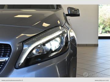 Abs, Airbag, Airbag passeggero e laterali, Airbag per la testa e le ginocchia, Chiusura centralizzata, Immobilizzatore elettronico, Keyless Start, Regolazione e chiusura specchietti retrovisori elettrica, 4 alzacristalli elettrici comfort, Computer di bordo, Accensione fari automatica, Sensore pioggia, Volante a 3 razze regolabile in altezza e profondità, Trip control, Comandi vocali, Navigatore cartografico, Autoradio digitale con comandi al volante, Lettore cd mp3, Interfaccia Bluetooth-USB-AUX, Climatizzatore, Bracciolo centrale in pelle scorrevole porta oggetti, Interni in pelle parziale nera con cuciture bianche, Inserti plancia effetto carbonio, Sedili anteriori regolabili in altezza, Supporto lombare elettrico, Battitacco cromato con logo Mercedes Benz, Sedili posteriori sdoppiati, Start-Stop automatico, Dynamic Select, Cambio automatico con paddle al volante, Freno di stazionamento elettrico, Fari Full LED, Fari posteriori a LED, Profilo paraurti anteriore e posteriore cromato, Griglia anteriore a nido d'ape, Sensori di parcheggio anteriori e posteriori, Cerchi in lega 17.
