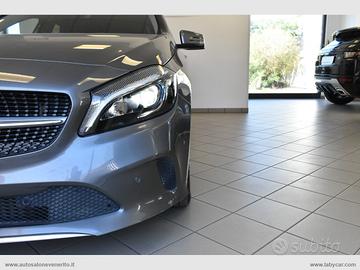 Abs, Airbag, Airbag passeggero e laterali, Airbag per la testa e le ginocchia, Chiusura centralizzata, Immobilizzatore elettronico, Keyless Start, Regolazione e chiusura specchietti retrovisori elettrica, 4 alzacristalli elettrici comfort, Computer di bordo, Accensione fari automatica, Sensore pioggia, Volante a 3 razze regolabile in altezza e profondità, Trip control, Comandi vocali, Navigatore cartografico, Autoradio digitale con comandi al volante, Lettore cd mp3, Interfaccia Bluetooth-USB-AUX, Climatizzatore, Bracciolo centrale in pelle scorrevole porta oggetti, Interni in pelle parziale nera con cuciture bianche, Inserti plancia effetto carbonio, Sedili anteriori regolabili in altezza, Supporto lombare elettrico, Battitacco cromato con logo Mercedes Benz, Sedili posteriori sdoppiati, Start-Stop automatico, Dynamic Select, Cambio automatico con paddle al volante, Freno di stazionamento elettrico, Fari Full LED, Fari posteriori a LED, Profilo paraurti anteriore e posteriore cromato, Griglia anteriore a nido d'ape, Sensori di parcheggio anteriori e posteriori, Cerchi in lega 17.