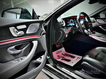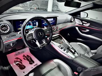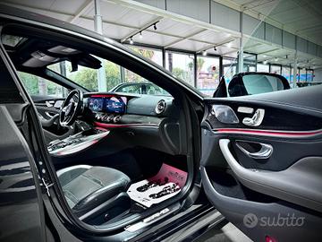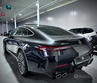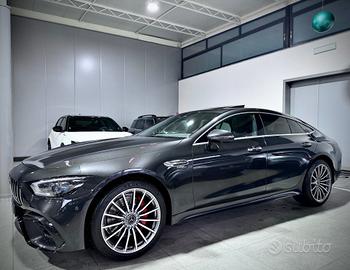 Mercedes AMG GT Coupe' 435CV Mhev Eq Boost 5 porte,versione 5 posti,allestimento Premium Plus,dotata di colorazione speciale Sword Grey,cambio automatico,sequenziale e al volante,Start&Stop,pack keyless,sospensioni pneumatiche,cerchi 20" bicolore con pneumatici Pirelli M+S,pinze freni rosse,pack scarico sportivo con sound modulabile di serie,spoiler posterior elettrico retrattile,vetri oscurati,tetto panoramico apribile,telecamera di manovra 360°,sensori di parcheggio anteriori e posteriori,parcheggio automatico,Pack full led Exterior con fari multibeam dinamici,abbaglianti automatici e fari adattivi,interni in pelle e alcantara,sedili riscaldabili e regolabili elettricamente con memoria,supporto lombare,sedute estendibili,battitacco con logo Led Mercedes,Ambient Light a colorazione variabile,sistema di navigazione,autoradio Carplay mp3 con display 10",connectivity pack aux,usb,bluetooth voce e dati,hotspot wi-fi,interfaccia ioS e Android,impianto audio Burmester,attivazione vocale,poggiabraccio in pelle,clima automatico bi-zona,volante multifunzione,cruise control adattivo,retrovisori regolabili e richiudibili elettricamente,portellone posteriore elettrico,sensori luci e pioggia,abs,esp,tutti i sensori e i sistemi di assistenza e sicurezza alla guida.