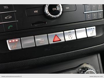 Abs, Airbag, Airbag passeggero e laterali, Airbag per la testa e le ginocchia, Chiusura centralizzata, Immobilizzatore elettronico, Regolazione specchietti retrovisori elettrica, 4 alzacristalli elettrici comfort, Cruise control, Computer di bordo, Accensione fari automatica, Sensore pioggia, Volante in pelle multifunzione regolabile in altezza e profondità, Comandi vocali, Autoradio digitale, Lettore cd mp3, Interfaccia Bluetooth-USB-AUX, Climatizzatore, Bracciolo centrale in pelle scorrevole portaoggetti, Interni in pelle totale, Inserti plancia grigio, Sedili anteriori regolabili in altezza, Battitacco cromato con logo Mercedes Benz, Sedili posteriori sdoppiati, Seduta posteriore apribile per bambini, Sedili anteriori riscaldabili, Cambio automatico con paddle al volante, Sistema ESP, Sistema Attention assist, Start-Stop automatico, Griglia anteriore grigio alluminio con finiture cromate, Freno di stazionamento elettrico, Profili paraurti anteriori e posteriori cromati, Cerchi in lega 16.
