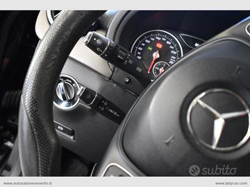 Abs, Airbag, Airbag passeggero e laterali, Airbag per la testa e le ginocchia, Chiusura centralizzata, Immobilizzatore elettronico, Regolazione specchietti retrovisori elettrica, 4 alzacristalli elettrici comfort, Cruise control, Computer di bordo, Accensione fari automatica, Sensore pioggia, Volante in pelle multifunzione regolabile in altezza e profondità, Comandi vocali, Autoradio digitale, Lettore cd mp3, Interfaccia Bluetooth-USB-AUX, Climatizzatore, Bracciolo centrale in pelle scorrevole portaoggetti, Interni in pelle totale, Inserti plancia grigio, Sedili anteriori regolabili in altezza, Battitacco cromato con logo Mercedes Benz, Sedili posteriori sdoppiati, Seduta posteriore apribile per bambini, Sedili anteriori riscaldabili, Cambio automatico con paddle al volante, Sistema ESP, Sistema Attention assist, Start-Stop automatico, Griglia anteriore grigio alluminio con finiture cromate, Freno di stazionamento elettrico, Profili paraurti anteriori e posteriori cromati, Cerchi in lega 16.