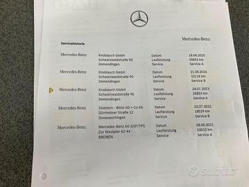 Manutenzione effettuata regolarmente presso Mercedes Service con ultimo tagliando eseguito ad agosto 2025 a 35.852Km e scadenza revisione ministeriale a settembre 2027.