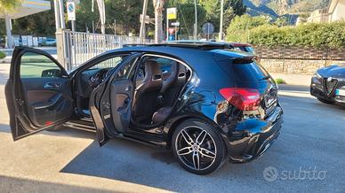 Interni e Comfort: Interni sportivi in pelle con sedili riscaldabili e regolabili elettronicamente tramite il pannello porta con memorie, volante multifunzione AMG con annesse palette al volante, climatizzatore automatico bizona, sistema multimediale con Bluetooth e USB, impianto audio Harman Kardon con subwoofer, sensori di parcheggio anteriori e posteriori, telecamera posteriore, pacchetto luci interne con led multicolore, battitacco illuminato, cruise control, accensione tramite pulsante start end stop (senza chiave), tettuccio apribile, navigatore, selettore modalita di guida, specchietti regolabili e reclinabili elettronicamente.