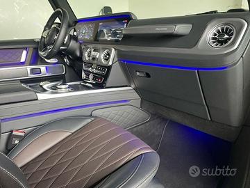 Aprigarage integrato nello specchio retrovisore interno - Blind Spot Assist - Cerchi in lega AMG da 20" a 5 doppie razze in grigio Himalaya e torniti a sp., pneum. 275/50 - Edizione speciale Final Edition - Green - Impianto di scarico sportivo - Inserti in frassino nero fiammato a poro aperto - Interni Superior - Pacchetto parcheggio con telecamera 360° - Pacchetto protezione antifurto incluso impianto di allarme antifurto-antiscasso - Pianale di carico in legno di ciliegio G manufaktur - Riscaldamento supplementare - Rivestimenti in Pelle nappa bicolore marrone espresso/nero (con P77)