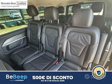La vettura è completa nella dotazione optional di Airbag passeggero, Alternatore 14V o 250 A, Apertura e chiusura Comfort con telecomando a infrarossi, Apertura separata del lunotto, AppleCar Play e Android Auto, Attention Assist, Ausilio alla partenza in salita (Hill holder), Batteria AGM 12V 92Ah, Batteria tampone per la partenza, Binari per l'aggancio rapido e lo scorrimento dei sedili (25 mm per volta), Blocco attivo per porta laterale aperta, Braccioli per i sedili del vano posteriore, COC, Cambio automatico 9G-TRONIC, Categoria di emissioni Euro 6d-TEMP GR.II, Cerchi in lega 7,5 j x18 a 5 doppie razze, Chiave in look cromato, Climatizzatore TEMPMATIC posteriore, Climatizzatore automatico THERMOTRONIC, Condotto dell'aria calda per il vano passeggeri, Consolle centrale con vano di stivaggio, Controllo della pressione degli pneumatici, Cruise Control, Digital Radio (DAB), Divisorio nel vano bagagli, Filtro gasolio con separatore d'acqua, Finestrini posteriori fissi, Finestrino anteriore destro fisso nella nell porta scorrevole,