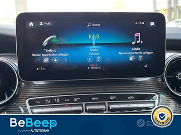 DEK:[10906255] Vuoi maggiori informazioni su questa vettura? Chiamaci ora: Consulenti sempre disponibili per te, anche in pausa pranzo! Scopri di più sul nostro sito www.autotorino.it BeBeep è il nuovo marchio dell'usato di Autotorino, garanzia di qualità e sicurezza. Ogni vettura è selezionata con cura e sottoposta a rigidi controlli per offrirti sempre la migliore esperienza d'acquisto. Scegli BeBeep per un viaggio senza preoccupazioni. ID VEICOLO AUTOTORINO: U1188579 - Prezzo da considerarsi escluso di passaggio di proprietà e contributo ambientale PFU. Se presente una permuta si intendono altresì esclusi i costi di gestione dell'usato. (contributo PFU pari a 8,47€, costi di gestione dell'usato pari a 250€). Il calcolo del passaggio di proprietà varia in base a potenza del veicolo e residenza dell'intestatario del veicolo, consulta i dettagli sul sito www.aci.it La vettura è completa nella dotazione optional di Airbag passeggero, Alternatore 14V o 250 A, Apertura e chiusura Comfort con telecomando a infrarossi, Apertura separata del lunotto, AppleCar Play e Android Auto, Attention Assist, Ausilio alla partenza in salita (Hill holder), Batteria AGM 12V 92Ah, Batteria tampone per la partenza, Binari per l'aggancio rapido e lo scorrimento dei sedili (25 mm per volta), Blocco attivo per porta laterale aperta, Braccioli per i sedili del vano posteriore, COC, Cambio automatico 9G-TRONIC, Categoria di emissioni Euro 6d-TEMP GR.II, Cerchi in lega 7j x 17a 5 razze in argento vanadio, Chiave in look cromato, Climatizzatore TEMPMATIC, Climatizzatore TEMPMATIC posteriore, Condotto dell'aria calda per il vano passeggeri, Consolle centrale con vano di stivaggio, Controllo della pressione degli pneumatici, Cruise Control, Digital Radio (DAB), Filtro gasolio con separatore d'acqua, Finestrini posteriori fissi, Finestrino anteriore destro fisso nella nell porta scorrevole, Finestrino anteriore sinistro, fisso nella nell porta