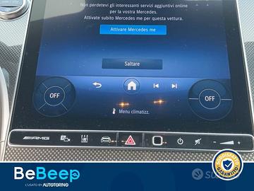 AMG Dynamic Select, AMG Ride Control, Airbag centrale, Alternatore Starter integrato di seconda generazione, Asse posteriore sterzante, Blind Spot Assist, Cambio a 9 marce SPEEDSHIFT MCT AMG, Cerchi in lega leggera AMG da 19"" (48,3 cm) a 10 razze ottimizzati dal punto di vista aerodinam, Cielo in tessuto nero, Climatizzatore automatico thermatic, Consolle centrale nera lucidata a specchio, Digital Light, Display centrale, Driver display, Giubbetto fluorescente per guidatore, Illuminazione di atmosfera, Inserti in tessuto metallico, Keyless start, Keyless-Go, MBUX Navigation Premium, MBUX multimedia system, Modulo di comunicazione (5G) per l'utilizzo dei servizi Mercedes me connect, PRE-SAFE system, Pacchetto Keyless-go, Pacchetto Memory, Pacchetto Premium, Pacchetto USB, Pacchetto integrazione per smartphone Apple o Android, Pacchetto parcheggio, Pacchetto premium, Pacchetto retrovisori, Pinze freno anodizzate color argento, Plancia portastrumenti e linee di cintura in materiale artico effetto nappa,