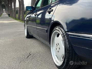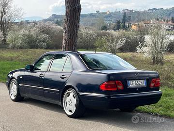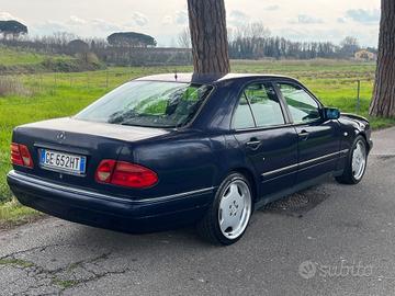 Mercedes classe E 200 aspirata 136 cv anno 1995 gia veicolo ultratrentennale con agevolazioni di auto d epoca ( passaggio a costo ridotto , assicurazione e bollo ) . Km 266.000 . Cerchi in lega AMG da 18 omologati a libretto . Da sostituire resistenza ventilatore riscaldamento. L auto è rigida di sospensioni. Impianto elettrico rinastrato in quanto la gomma dei fili si era deteriorata. Il blocchetto chiave si era rotto ed e stato sostituito con un altra chiave non originale. Revisionata, tagliandata . Tel331/94 35 784