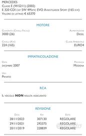 Vendesi Mercedes E320 del 2007. Si consegna tagliandata e revisionata.