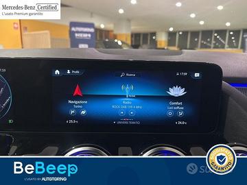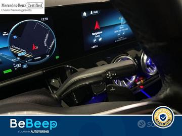 Acoustic ambient protection, Advanced Sound System, Alette parasole con deflettore estendibile, Assetto Ribassato, Blind Spot Assist, Bracciolo posteriore estraibile con portabevande, Carica wireless, Cavo di ricarica per presa domestica 5 mt, piatto, Cavo di ricarica per wallbox 5 m, Cerchi in lega da 18"" a 5 razze, Chiamata di emergenza Mercedes-Benz, Climatizzatore automatico COMFORTMATIC, Controllo da remoto e servizi di ricarica Premium., Cruise Control, Disattivazione automatica airbag lato passeggero., Display centrale con diagonale da 10,25"", Display sulla plancia con diagonale da 10,25"", Dynamic Select, Fari LED High Performance, Funzioni avanzate MBUX, Giubbetto fluorescente per guidatore, Illuminazione est.orientamento con proiezione logo, Inserti in look a spirale, Kneebag per il guidatore, Luci soffuse «ambient» con 64 diversi colori, Modulo LTE per Mercedes me connect, Pacchetto Comfort per i sedili, Pacchetto KEYLESS-GO, Pacchetto PRESTIGE, Pacchetto parcheggio, Pacchetto per il vano bagagli, Pacchetto