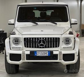 Mercedes classe G63 Amg 5.5 V8 Biturbo, anno 2016 già restyling 571cv, 98.000km, kit restyling fanaleria anteriore e posteriore full led, griglia panamericana, Carbon Pack interno, sedili in pelle bicolore rosso/nero, sedili anteriori riscaldabili e ventilati, sedili anteriori massaggianti, sedili posteriori riscaldabili, monitor originali Mercedes dietro i poggiatesta con relative cuffie originali, navigatore satellitare, caricatore Cd, tetto apribile, cielo in alcantara, cover ruota di scorta in tinta, pedane laterali ecc ecc appena eseguito tagliando, sostituzione candele e gomme nuove.