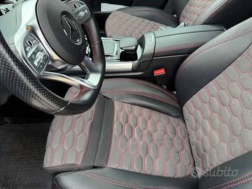 Allestimento PREMIUM AMG Line: colore nero perlato, apertura keyless anteriore e posteriore, luci soffuse 64 colori, pacchetto night edition, sedili in pelle sintetica e alcantara AMG line riscaldabili (anteriori), volante AMG in pelle e pelle traforata, telecamera 360 gradi, sensori di parcheggio 360 gradi, virtual cockpit 10.6 pollici, portellone elettrico (apertura e chiusura dalla chiave, da pulsante o dall’interno), riconoscimento vocale Mercedes, fari multibeam, sistemi assistenza alla guida, telecamera con riconoscimento semaforo, sensori angolo cieco, specchietti richiudibili elettrici, vetri posteriori oscurati, cerchi in lega 19 pollici AMG Diamantati.