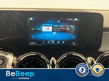 La vettura è completa nella dotazione optional di Alette parasole con deflettore estendibile, Autoradio digitale, Cambio automatico 8G-DCT, Cerchi in lega da 17"" a 10 razze,pneumatici 225/45, Chiamata di emergenza Mercedes-Benz, Climatizzatore automatico, Comfort, Disattivazione automatica airbag lato passeggero., Dynamic Select, Fari alogeni con luci diurne a LED integrate, Funzioni avanzate MBUX, Inserti in carbon look chiaro, Kneebag per il guidatore, MY803, Manuale istruzioni italiano, Modulo LTE per Mercedes me connect, Pacchetto per il vano bagagli, Portabevande doppio, Portaoggetti nella consolle con avvolgibile, Predisposizione per consegna della chiave digitale, Presa da 12 V nel vano bagagli, Rilevamento automatico del limite velocitÃ, Roof rails in alluminio, Sedile posteriore con