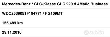 MERCEDES GLC 220CDI 4 MATIC 170CV , CAMBIO AUTOMATICO E SEQUENZIALE 9 MARCE ( PALETTE AL VOLANTE ) ,NOVEMBRE 2016 , un solo proprietario , con circa 155514 km certificati