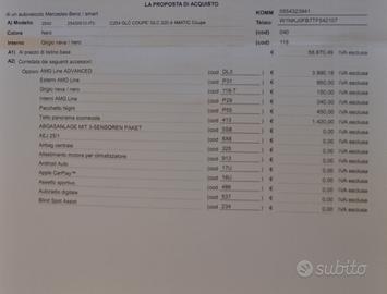 Ciao, sono Giorgio di PGautomotive.it ho ispezionato e provato quest'auto. Tutte le informazioni che leggi nella scheda del veicolo sono state da me verificate personalmente. Per qualsiasi altra informazione o per un test drive puoi scrivermi su WhatsApp oppure contattami al - VISIBILE SOLO SU APPUNTAMENTO - GARANZIA UFFICIALE MERCEDES di 2 anni (scadenza Gennaio 2028) estendibile La Mercedes GLC Coupè 220d è la suv medio-grande della casa tedesca. A fronte di un prezzo di listino in questa versione AMG Line Advanced di circa 92.000€ si ottiene un’auto comoda, scattante e che consuma poco, oltre che elegante e molto ben rifinita. Pari al nuovo con solo 3 mesi di vita e circa 1.500 chilometri percorsi. Ottimo l’equipaggiamento che comprende oltre al pacchetto AMG Line Advanced, il Tetto panoramico scorrevole, gli interni in pelle e tantissimo altro consultabile dettagliatamente nelle foto sul nostro sito PGautomotive.it Auto pari al nuovo ! IVA ESPOSTA Per avere una una visione più approfondita e dettagliata della vettura ti consiglio di cercare l’annuncio sul nostro sito PGAUTOMOTIVE.IT