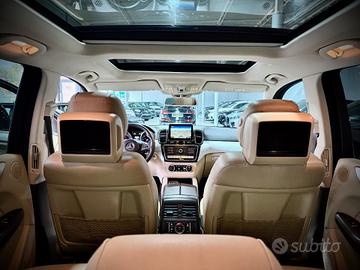 pelle totale beige con volante e inserti testa di moro,sedili riscaldabili,ventilati e regolabili elettricamente con memoria,supporto lombare,battitacco con logo Led Mercedes,Ambient Light a colorazione variabile,sistema di navigazione,autoradio cd 6 slot,mp3 con display 10",connectivity pack aux,usb,bluetooth voce e dati,monitor posteriori con lettore DVD,impianto audio Harmann/Kardon,poggiabraccio in pelle,clima automatico tri-zona con riscaldamento ausiliario e programmabile,volante