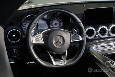 AMG GT CABRIO Anno: 2018 All’attivo 57.000km. Auto originale italiana. Finita in Iridium Silver magno Designo, interni in pelle sportivi. Capotte nera. Cerchi diamantati. Impianto frenante con dischi in acciaio ventilati. Sedili con regolazione elettrica. Sedili riscaldati e ventilati. Clima Bi-zona. Volante riscaldato. Selettore modalità di guida. Airscarf. Cambio semi-automatico. Cruise control adattivo. key-less. Book service e tool box presenti. Mai riverniciata mai incidentata. Richiesta: € 117,000.00 Per qualsiasi informazione non esitate a contattarci: Matteo Luca Si valutano permute/ritiri: inviaci foto e info del veicolo che vorresti permutare e sarai ricontattato con la nostra migliore offerta nel più breve tempo possibile. Possibilità di trasporto in tutta Italia.