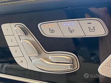 DEK:[10538100] EQUIPAGGIAMENTO OPZIONALE Airbag lat. (Sidebag) post. Aletta parasole doppia (estraibile, orientabile) AMG Pack Dynamic Plus: pinze freno Giallo vernic., volante AMG con pulsanti al volante Assetto sportivo (AMG Ride Control +) Climatizzatore automatico comfort (Thermotronik 3 zone) Differenziale autobloccante elettronico Fodere sedili/rivestimenti: pelle Exklusiv Nappa 2 colori Generazione luce AMG (sottoporta lat. con funzione proiezione) Impianto lavavetri riscaldato Pacchetto assistenza alla guida Plus: retrovisore est. con attivo assistente angolo morto, Tempomat regolazione distanza Distronic Plus con Servosterzo, sistema PRE-SAFE Plus, sistema PRE-SAFE Impuls lat., Servofreno Plus (BAS) con assistente incroci Pacchetto comfort acustica: vetro stratificato a isolamento termico e rifl. infrarosso Pacchetto Comfort Pacchetto Premium Plus: pacchetto Keyless Go, portellone con automat. sistema apertura e chiusura, pacchetto Memory, piantone sterzo (volante) a regolazione elettrica, pacchetto Sedili Multicontur attivo, Pacchetto Air-Balance, retrovisore est. con assistente angolo morto, System Surround Burmester, Head-up-Display, Fodere sedili/rivestimenti: pelle nappa, sedili ant. climatizzazione, sistema videocamera 360 gradi, supporto di ricarica ad induzione per Smartphone, Energizing Guida comfort Pacchetto-Night (AMG): vetri lat. post. e lunotto oscurati Pacchetto-Night II: AMG griglia anteriore oscurata Pacchetto-V8-Styling Exterieur Padiglione int. designo Dinamica Predisposizione car sharing Riscaldamento sedili Plus ant. Riscaldamento sedili post. Scarico sportivo (AMG Performance) Schienale post. sdoppiat. / ribaltab. sedile post. 3 posti Serbatoio carburante: 80 Ltr. (contenuto ampliato, Volumi 2) Service-System: MBUX assistente Interior (gestione del gesto senza contatto) Service-System: MBUX Augmented Reality per navigatore Servochiusura per porte Sistema assistenza guida: Riconoscimento segnaletica