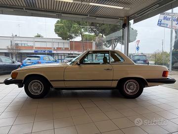Mercedes-benz SL 380 Roadster versione per mercato americano, anno 1982 3.8 benzina 205 CV Colore beige tetto panoramico , cambio automatico, sedili in pelle, cabriolet hardtop in tinta, veicolo di interesse storico e collezionisti iscritto ASI da libretto , 2 posti, radio con mangianastri, libretto uso e manutenzione ORIGINALE , ottime condizioni di meccanica e carrozzeria cerchi in lega