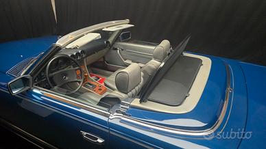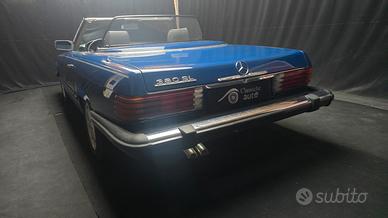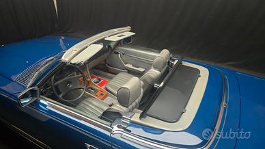 L’auto che presentiamo, rappresenta una roadster di lusso prodotta dalla Mercedes-Benz per affermare l’inconfutabile supremazia tecnica. Sicuramente elegante e sportiva, la 380 SL nel suo stupendo color Lapis Blue (932) originale MERCEDES BENZ, affascina per le sue linee intramontabili, le proporzioni classiche da roadster e il suo design iconico, negli interni come negli esterni, indossando un motore capace di erogare fino a 210 CV circa. La vettura che proponiamo è un oggetto che presenta tutto quello che un appassionato di auto storiche ed ancor più Mercedes Benz ricerca in una vettura. La sua linea evoca eleganza e spensieratezza, è talmente bella che ovunque si vada con lei, si viene accompagnati da sorrisi e sguardi di ammirazione. Questa Mercedes Benz è stata pensata espressamente per godersi la guida a cielo aperto, la stessa è completa di certificazione ASI e di certificato delle caratteristiche tecniche CRS del veicolo QUINDI ESENTE DA QUALSIASI TASSA e assicurazione agevolata annuale a circa 100 euro. La vettura , del 1983 splendida, usufruisce di tutte le agevolazioni fiscali e assicurative vigenti, corredata di BELLISSIMI ED ORIGINALI interni in pelle COLOR GRIGIO, full optional, autoradio ORIGINALE dell’epoca BECKER, clima AUTOMATICO, cruise control, HARD TOP ORIGINALE IN TINTA, OTTIMO soft top, doppie chiavi, FRANGIVENTO A CORREDO, libretto uso e manutenzione, matching numbers e matchings color, tutto corrispondente all’originale, CERCHI IN LEGA MERCEDES BENZ, la vettura presenta solo 87.000 km circa da nuova ed il suono vellutato del motore e l’agevole inserimento del cambio automatico, nonché le silenziose sospensioni confermano questa informazione, tagliandata regolarmente, revisionata e gommata nuova, pronta per essere un piacevole oggetto da collezionare oppure per l’immediato utilizzo su strada. Disponibile trasporto ovunque, in Europa. E’ gradito contatto telefonico per stabilire appuntamento. I nostri prezzi non prevedono eventuali permu
